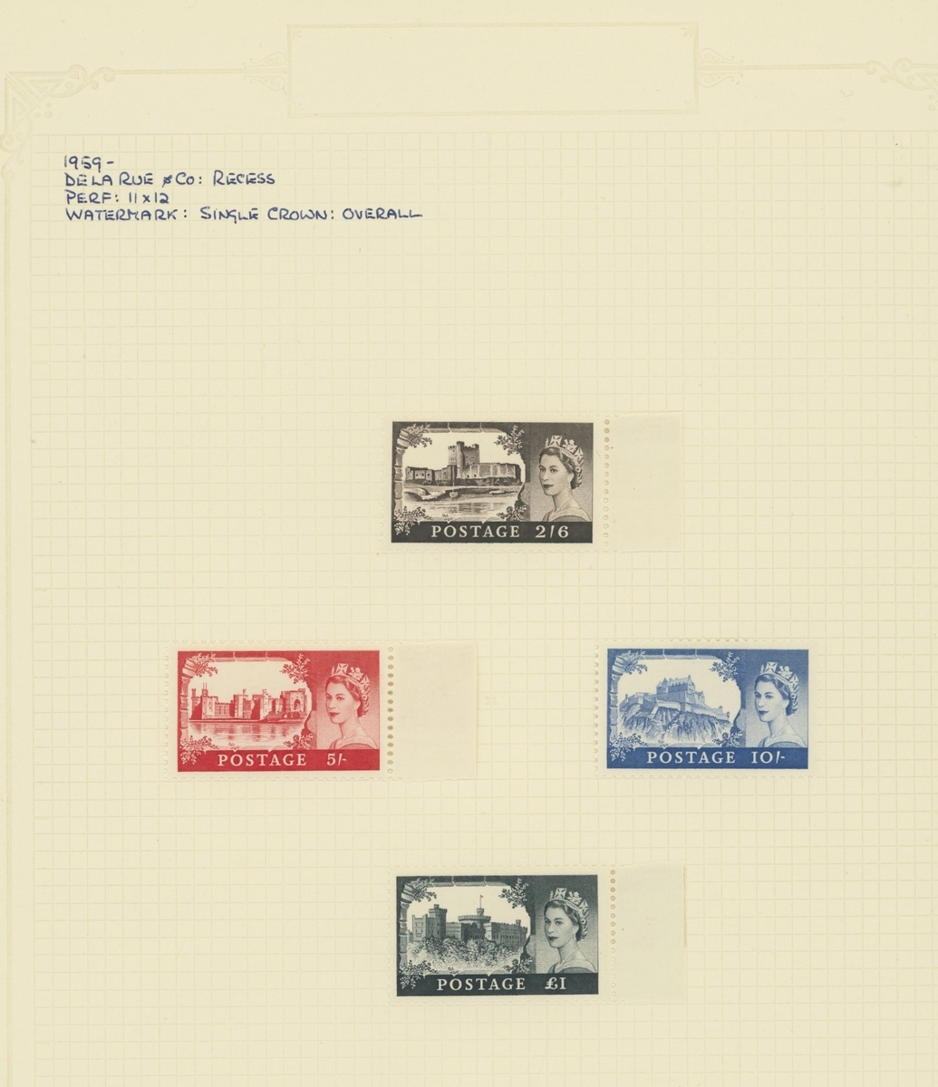 1959-68 'Castles' mint specialised collection mounted on twenty five written up pages with stamps identified by types and printings. Generally fine including some unmounted stamps.  A good lot for the specialist.