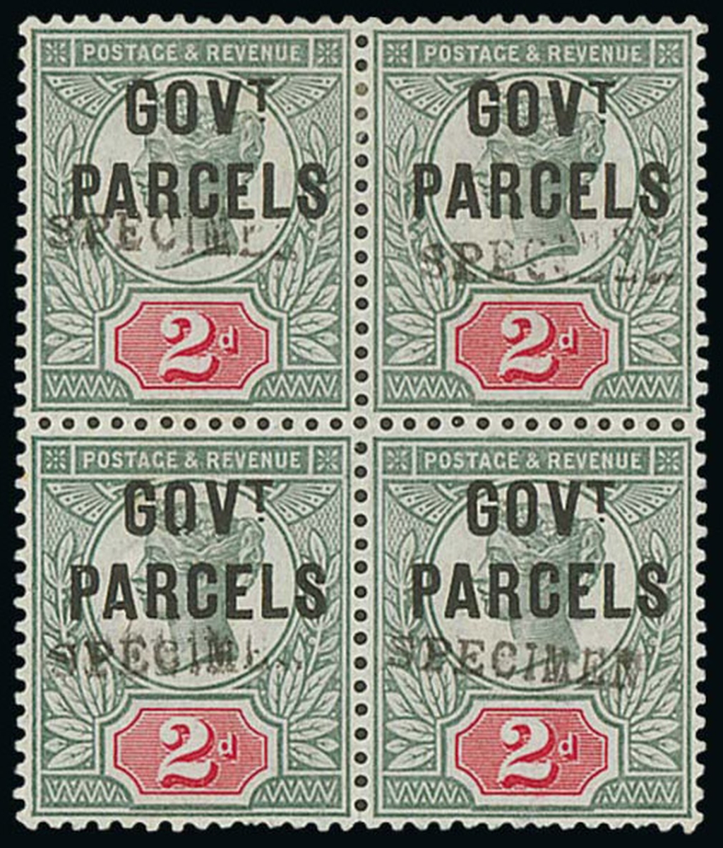 1891-1900 2d. grey-green and carmine block of four, overprinted "