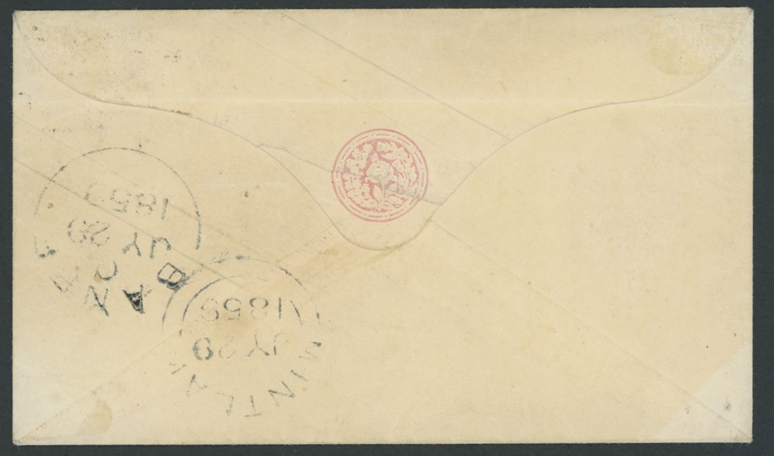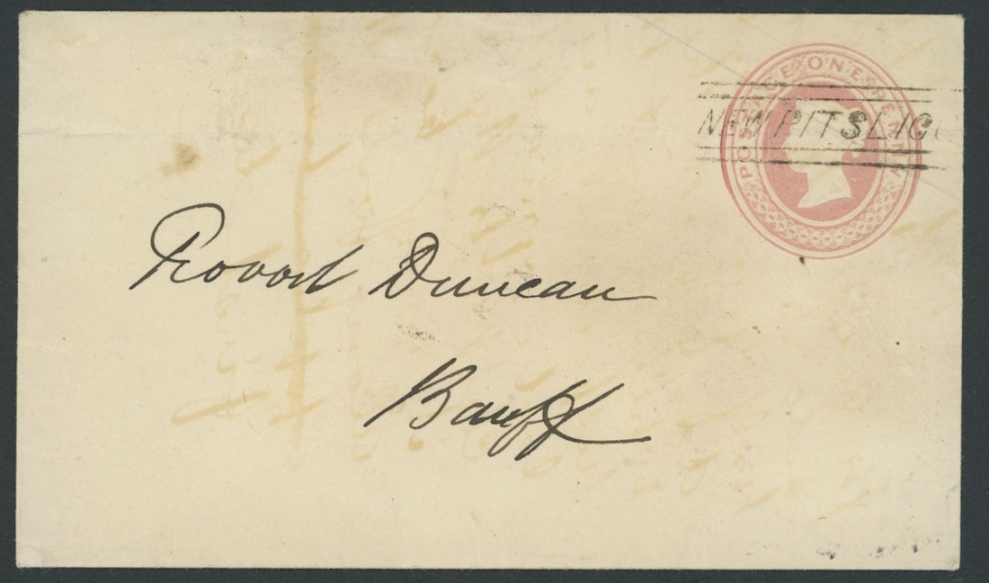 1d. pink envelope addressed to Banff, cancelled by framed "