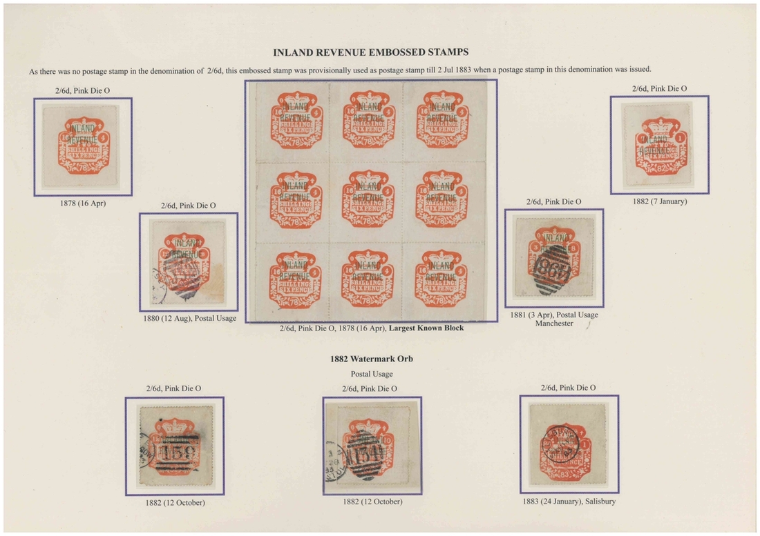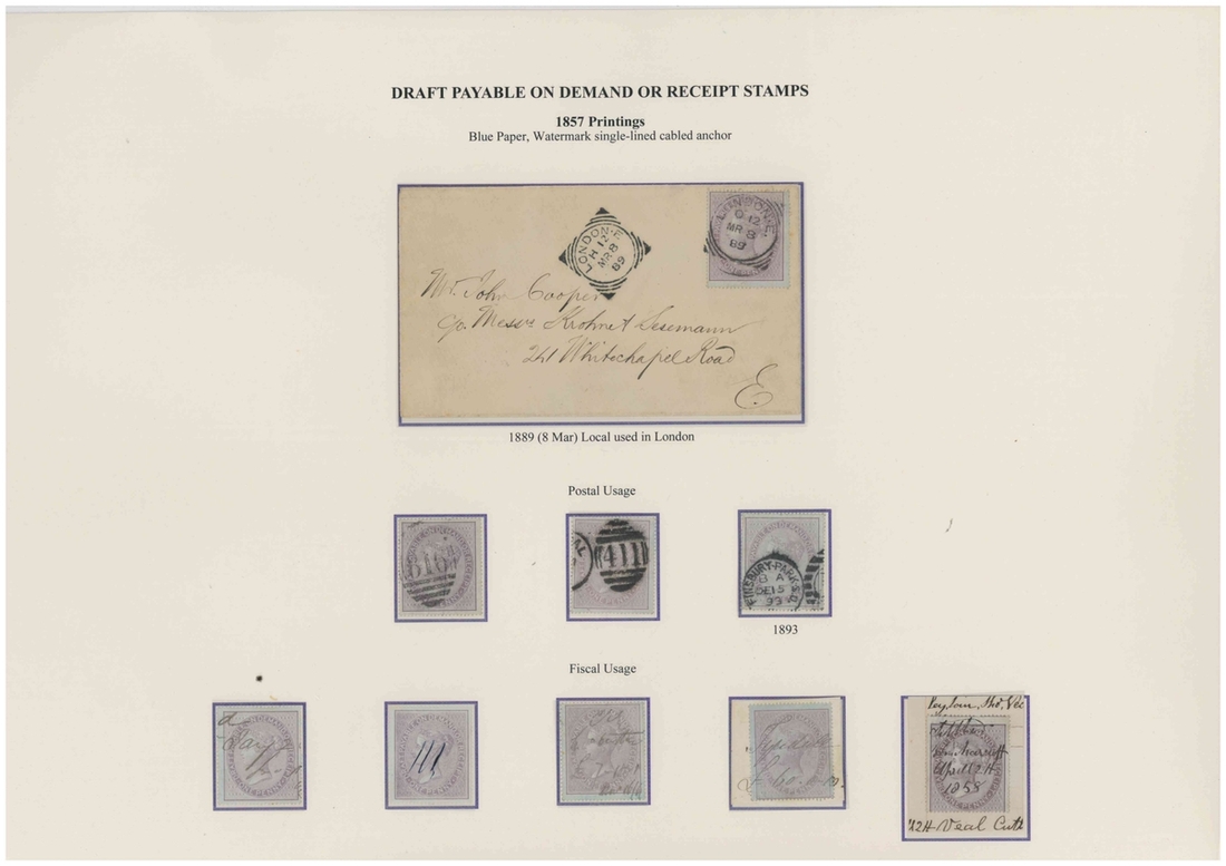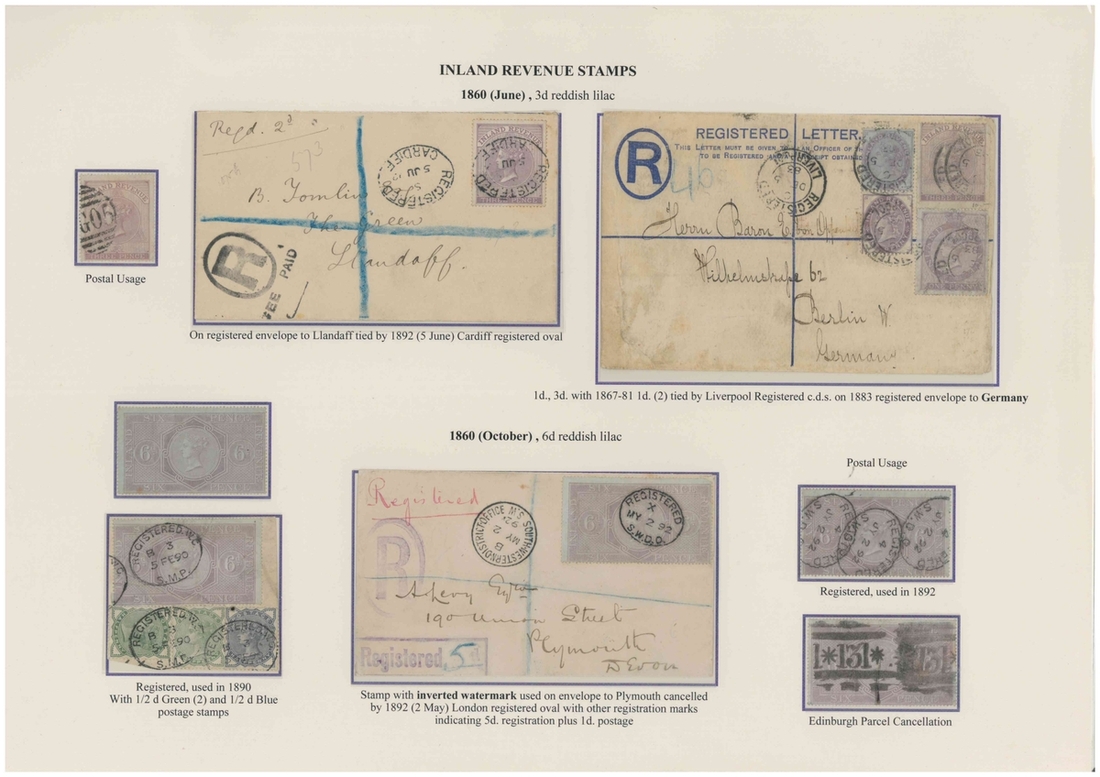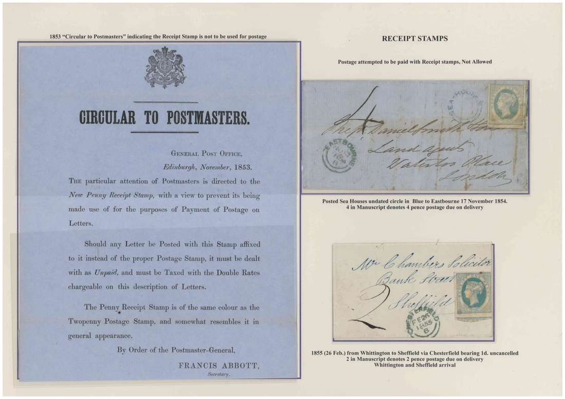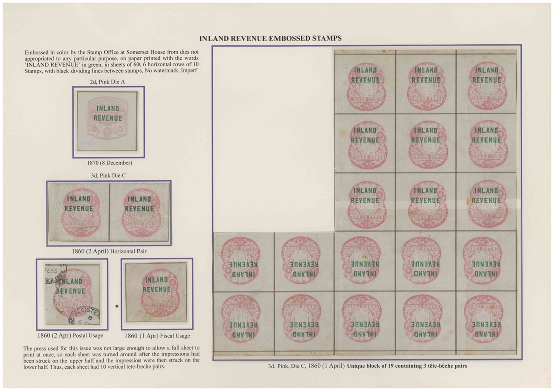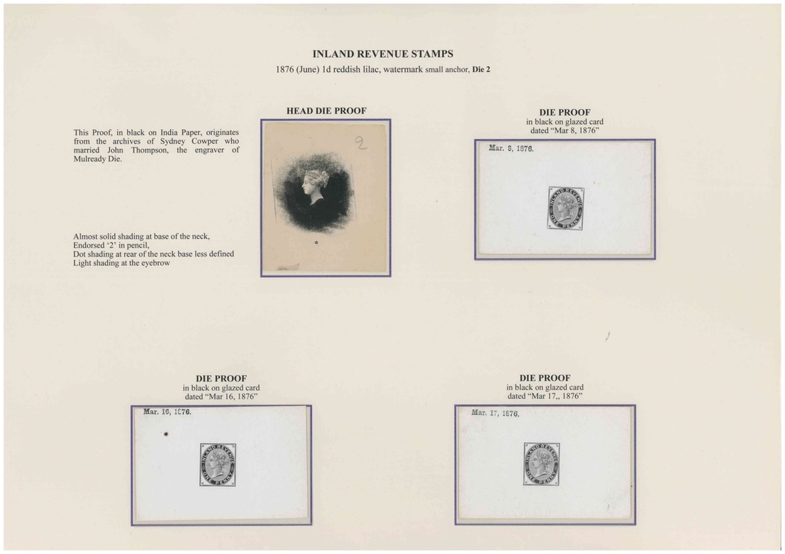 The valuable and comprehensive Collection, well written up on forty double exhibition pages,  including Receipt Stamps with Postal Notice "New Penny Receipt Stamp", 1853 Die I 1d. blue  imprimaturs from Plates 1, 2 and 4, also a single used on 1882 Liverpool local cover,  issued stamps with Thin semi-transparent paper (pair, block of four), Die II blocks of eight and twelve, blued paper used block of four, Draft Stamps, 1853 1d. ochre imprimaturs (2), issued stamps with block of four (2, one on semi-transparent paper), 1855 1d. reddish lilac imprimaturs (3), issued stamps with no watermark variety, 1856 1d. reddish lilac with imprimatur from Plates 11 and 12, 1857 1d. with imprimaturs from plates 17, 18, 19, 23, 25, 31, 33, 35, 36, 37, 38, 39, issued stamps with imperf. single, glazed paper, 1860 overprinted "