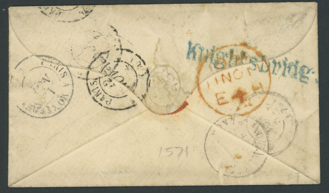 10d. brown, clear margins all round, tied by Inland Office barred numeral to small envelope to France, date unclear, struck with "