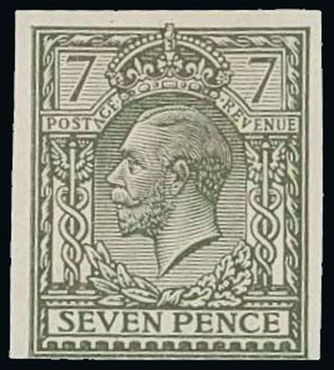 7d. olive-grey, an imprimatur with just clear to very large margins, part original gum; vertical bend though not apparent on the surface and in no way detracting from the fine and fresh appearance. Unique in private hands. R.P.S. Certificate (1982).  Specialised £7,500