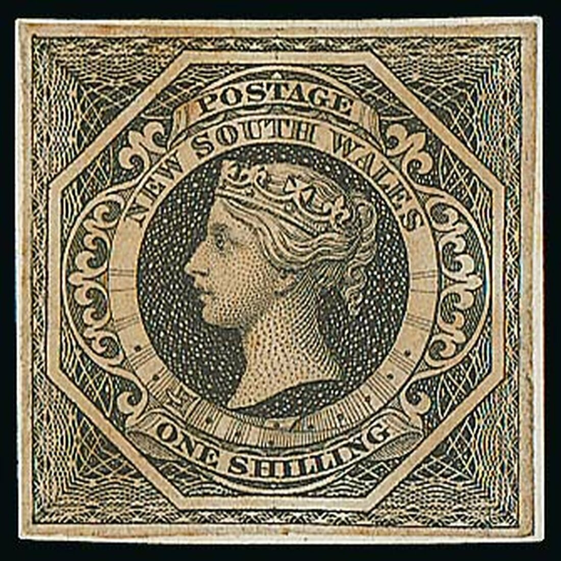 1/- in black on India paper backed on thin card, small to good margins, fine. Very rare, only four or five examples recorded. RPSV Certificate (2024). Photo