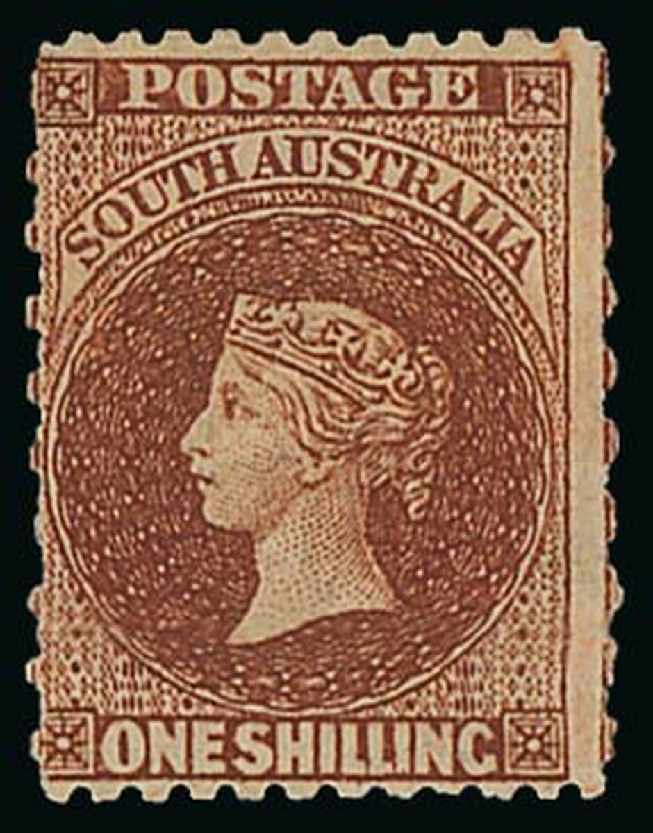 1867-70 watermark Large Star, perf 11½-12½ x roulette, 1/- chestnut unused with large part original gum, fresh and fine. S.G. 60, £1,500. Photo