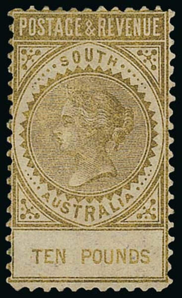 1886-96 Postage & Revenue perf. 10, £10 bronze, unused with part original gum, slightly toned and soiled as often encountered on this issue, R.P.S. Certificate (2023). A very rare stamp in unused condition. S.G. 206, £12,000. Photo