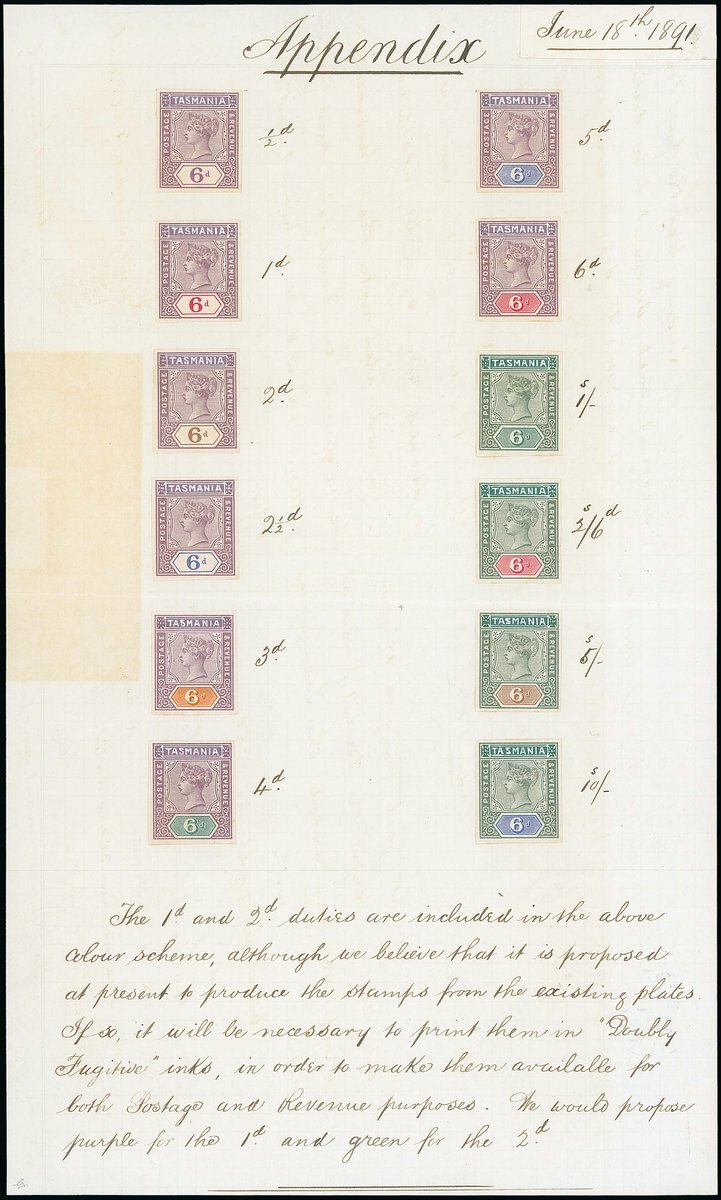 1892 "Appendix" sheet (168x281mm.) dated "June 18th 1891" bearing imperforate 6d.