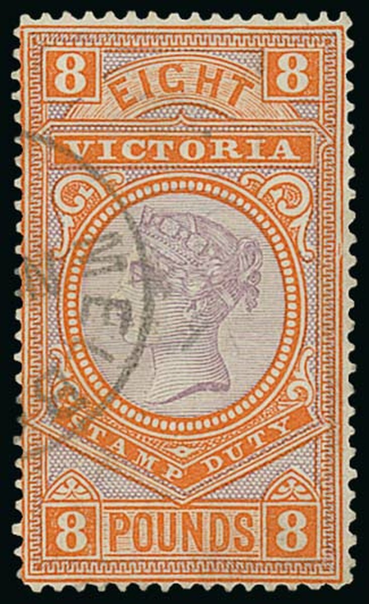 1886-96 Stamp Duty £8 mauve and brown-orange, variety watermark upright inverted cancelled-to-order with part