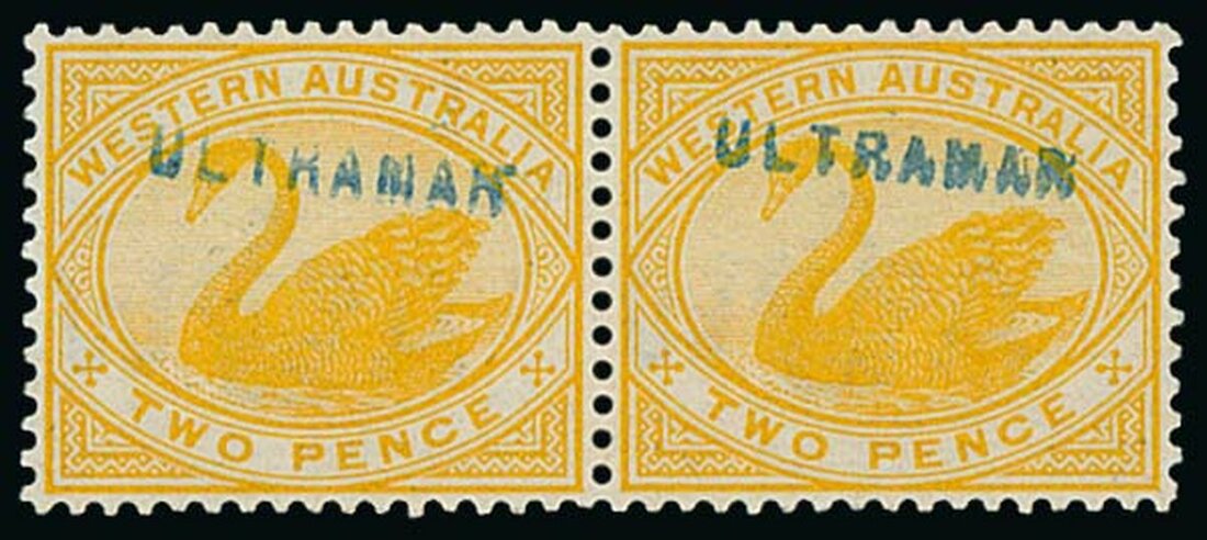 1899 watermark W Crown A, 2d. bright yellow pair, both handstamped