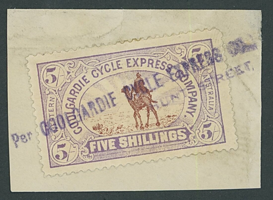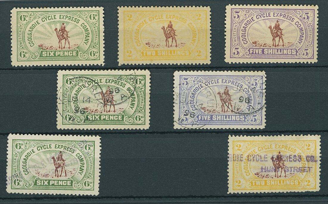 1896 Camel 6d., 2/- and 5/- unused with part or large part original (the 6d. and 5/- with gum thin at top caused through hinge removal); 6d., 2/- and 5/- (on piece) each cancelled by "Per