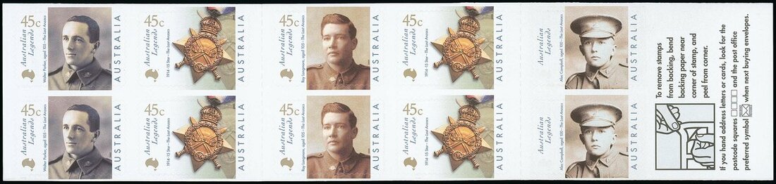 2000 Living Legends $4.50 complete booklet with gold (face value and map) omitted on both Alec Campbell adhesives, fine. BW 2280c, $2,000; S.G. 951ab, £2,000. Photo