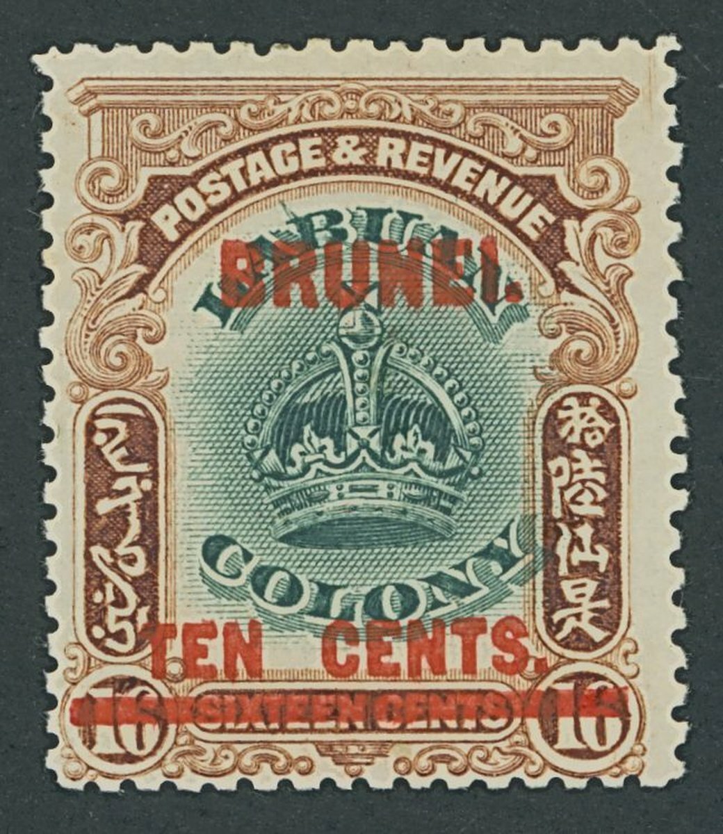 1906 10c. on 16c. green and brown, variety line through
