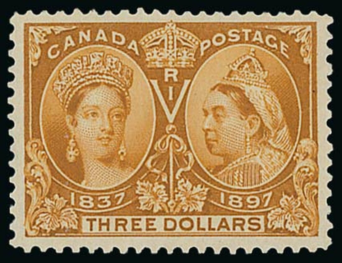 1897 Jubilee $3 bistre, well-centred and fine; large part original gum. S.G. 138, £1,500. Photo