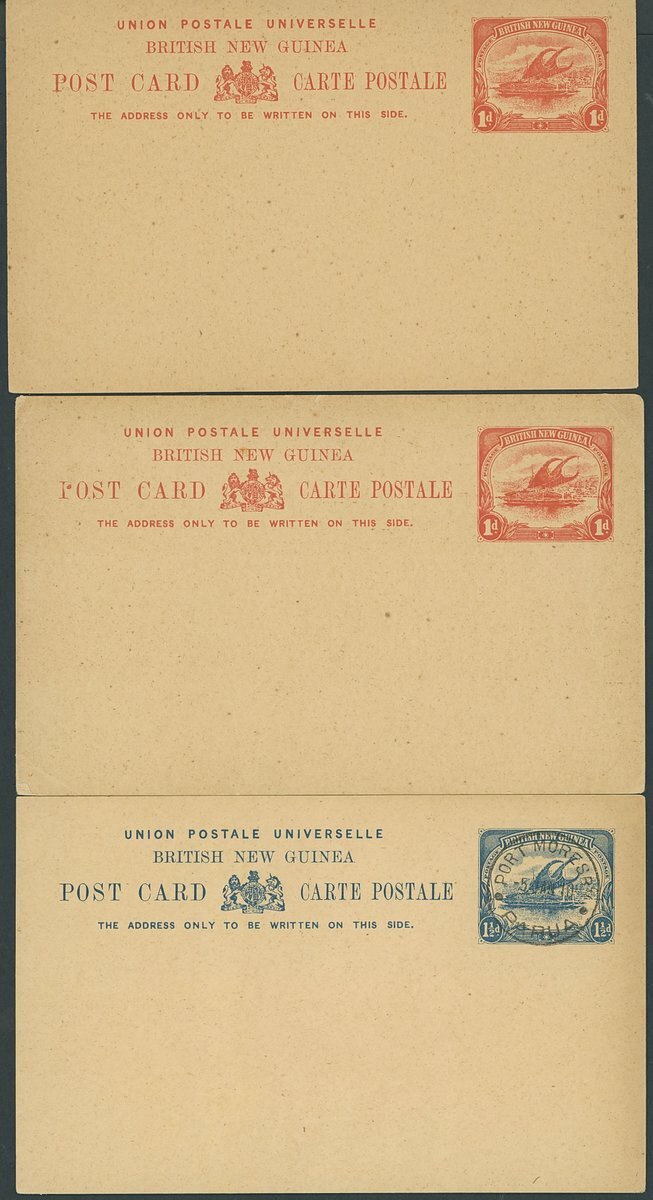 1d. unused (2), 1½d. unused (2, one with some minor discolouration at foot, the other spotted) and cancelled to order with Port Moresby c.d.s. (2)