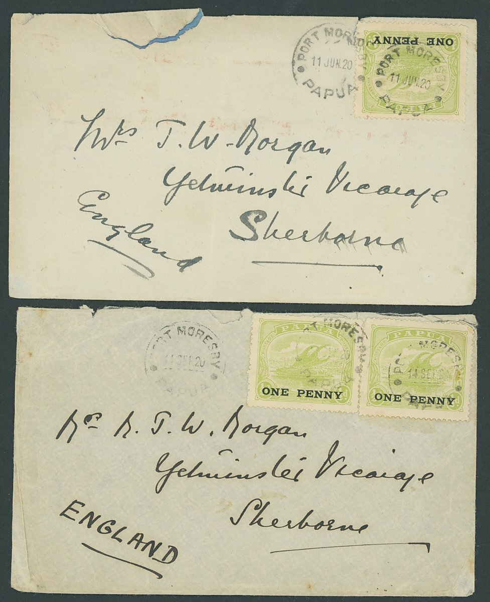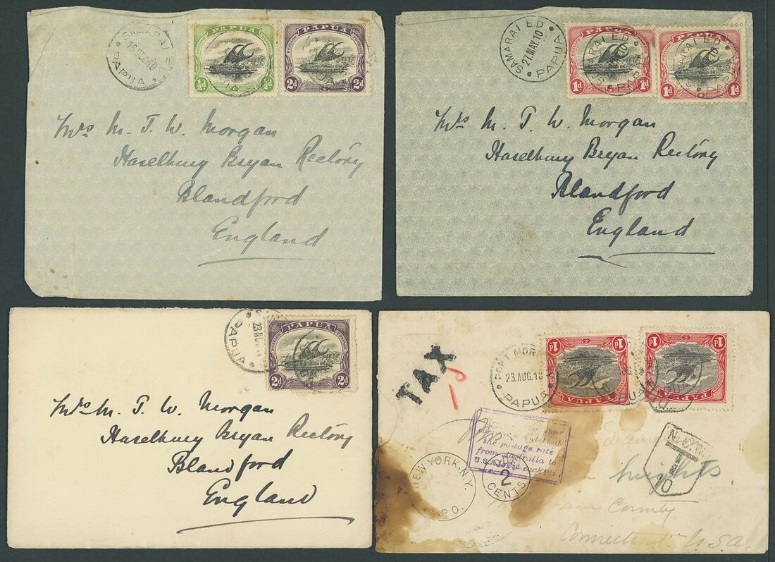 1910-20 group of commercial envelopes (9) to England (8) franked at 1d., 2d. (6, three different make-ups) and 2½d., and one to USA (stained) bearing 1d. (2) showing
