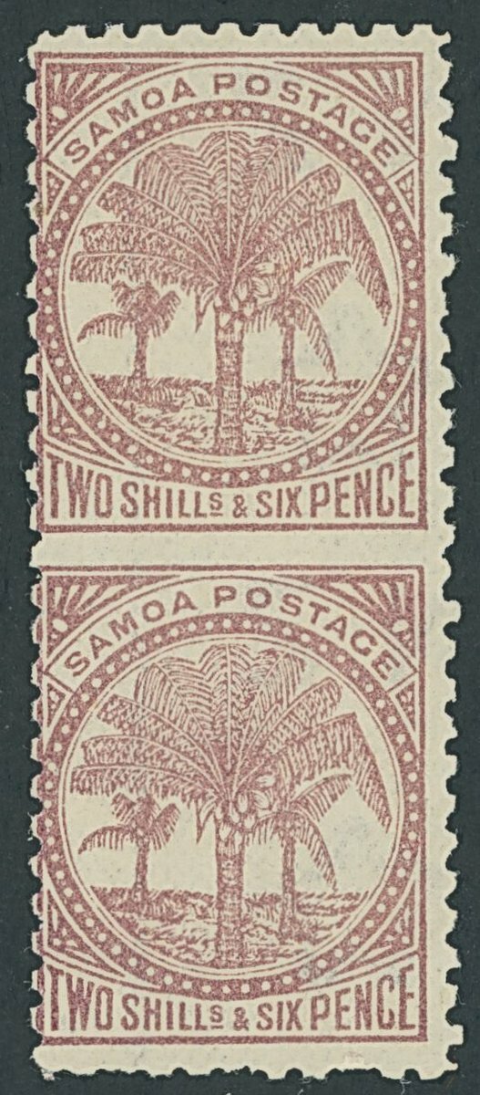 1886-1900 Palm Trees, perf 11 2/6d. deep purple vertical pair, variety imperforate between, centred to left, fresh and fine mint. S.G. 64ba, £450