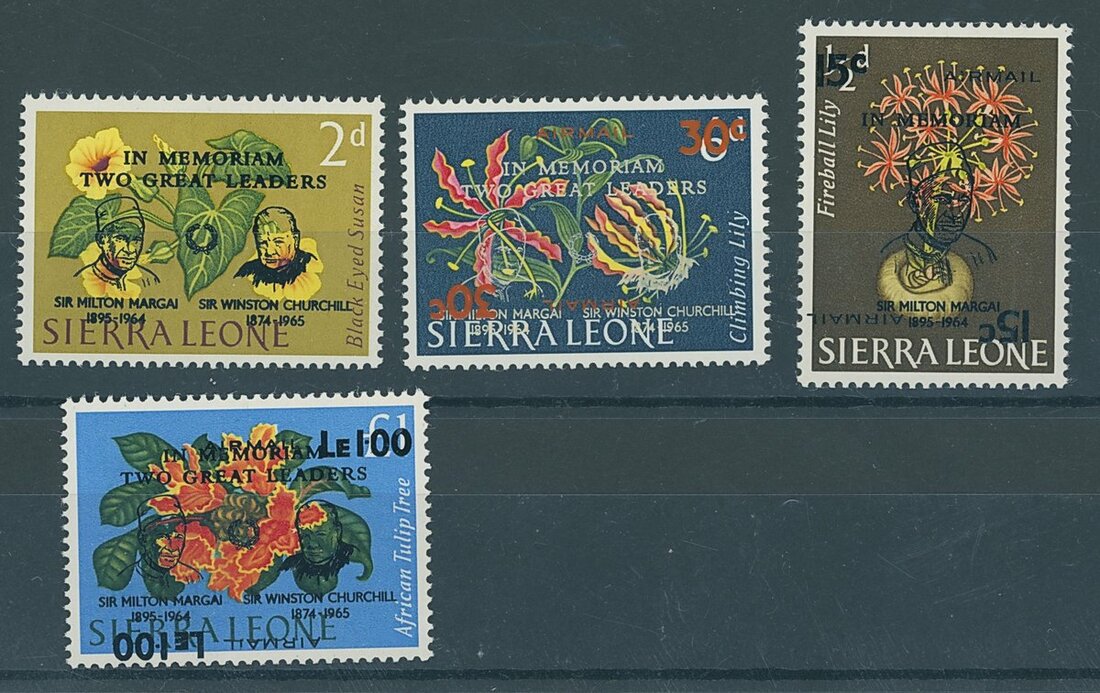 1965 Churchill/Margai Air overprint varieties (4) comprising 7c. on 2d. variety
