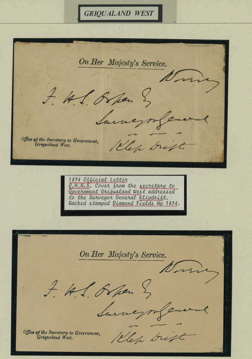 1874 (May) "On Her Majesty's Service" envelope and front from the same correspondence to F.H.S Orpen, Surveyor General, Klipdrift, both with printed "Office of the Secretary to Government,/Griqualand West" at lower left and signed, the envelope with
