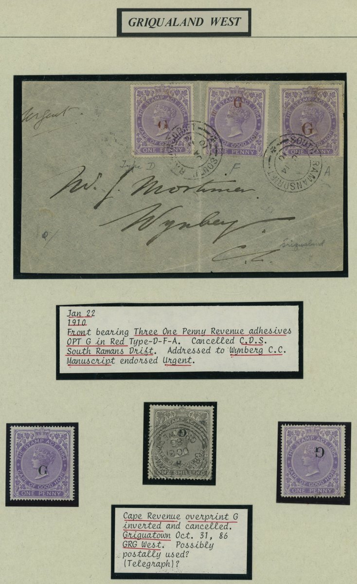 1d. (3) all with different "G" in red on 1910 (22 Jan.) front to Wynberg marked "Urgent", all tied by