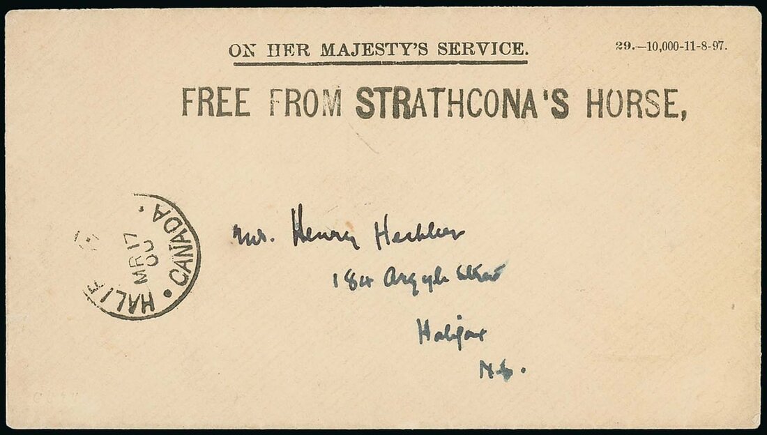 1900 (17 Mar.) stampless OHMS envelope used locally in Halifax bearing a fine strike of straight-line "