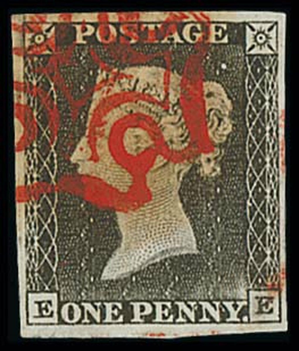 EE, good margins all round, showing attractive plate wear, cancelled by red Maltese Cross in bright shade. Fine and scarce.