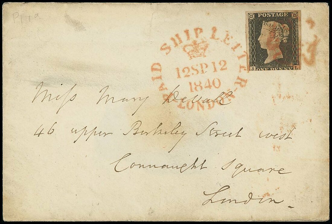 JL ,cut into at foot, good margins other sides, tied by red Maltese Cross cancellation to envelope to London and additionally tied by red "