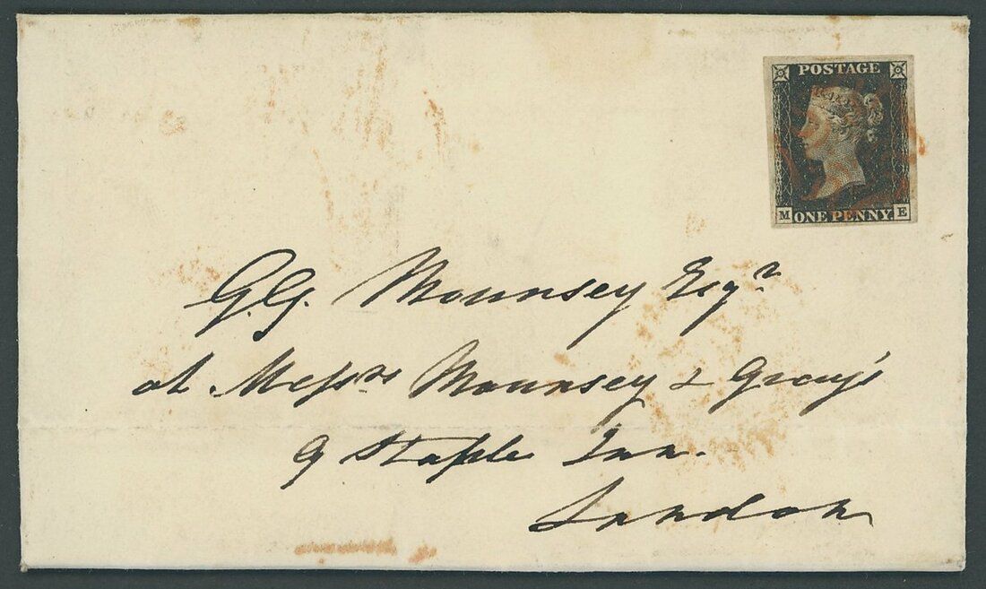 ME, recut side lines, good to huge margins all round, tied by Liverpool orange Maltese Cross to entire letter, dated 23 Dec. 1840, addressed to London; fine and attractive