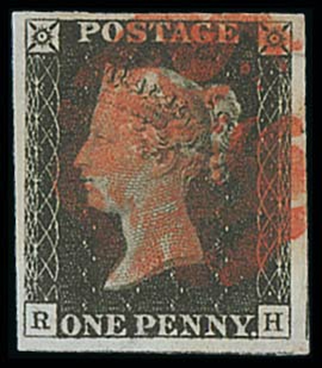 RH, good to very large margins all round, showing portions of the adjoining stamps at foot and right, cancelled by red Maltese Cross. Fine.