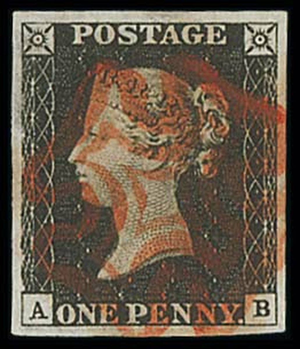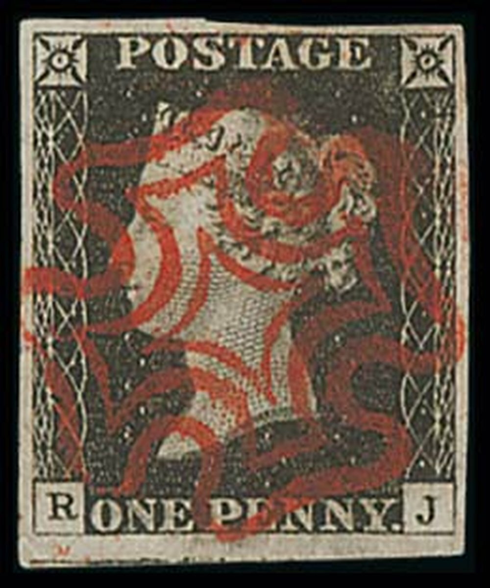 AB, RJ and RK, all cancelled by fine to very fine red Maltese Crosses, with four margins; RJ particularly fine and an attractive trio.