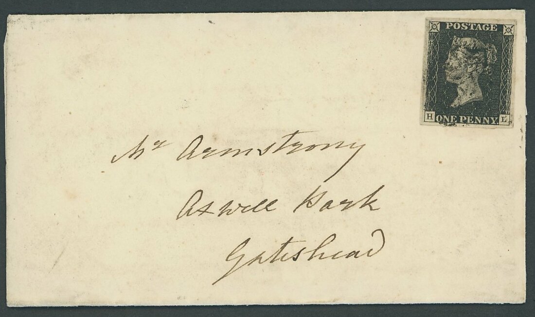 HL, large margins, black Maltese Cross cancellation, on entire letter from Carlisle to Gateshead dated 12 March 1841; a trifle stained on the reverse, but fine and attractive