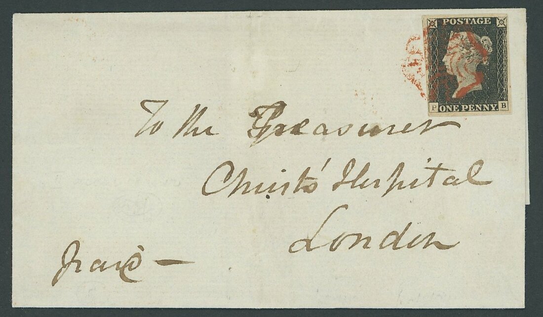PB, recut letter squares and a slightly worn impression, small to large margins all round, tied by a red Maltese Cross in an orange-red shade to entire to London with red Aberystwyth datestamp on the reverse; fine and attractive Welsh usage