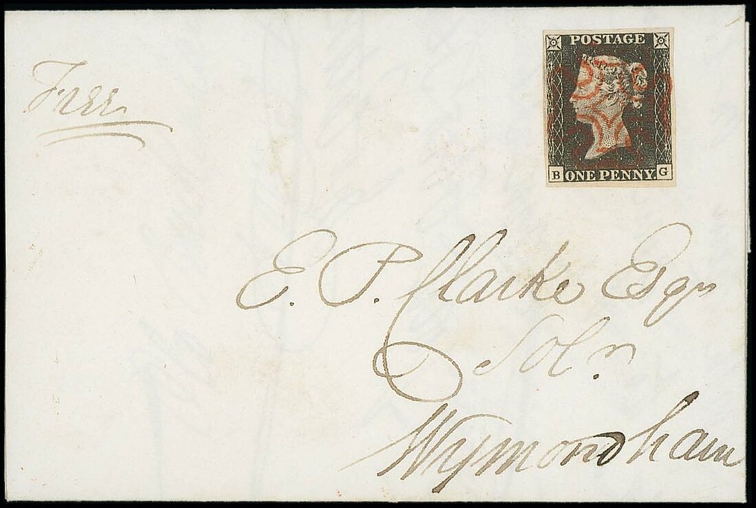 BG, large margins, complete and upright red Maltese Cross cancellation, on entire letter to Wynmondham and with superb Attleborough c.d.s. of 3 Nov. 1840 on the reverse; clean vertical filing fold well clear of the adhesive. Very fine and most attractive