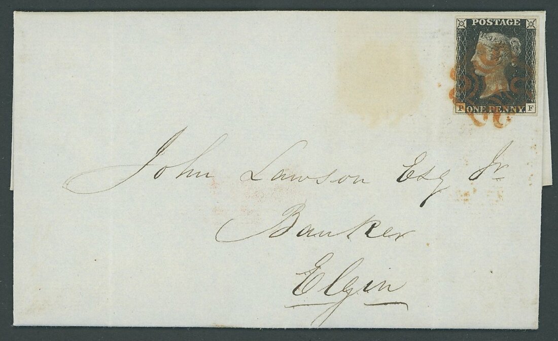 PF, good to large margins all round, tied by a fine red Maltese Cross cancellation to entire letter to Elgin with superb red framed Forres datestamp of 7 July 1840 on the reverse; fine and attractive