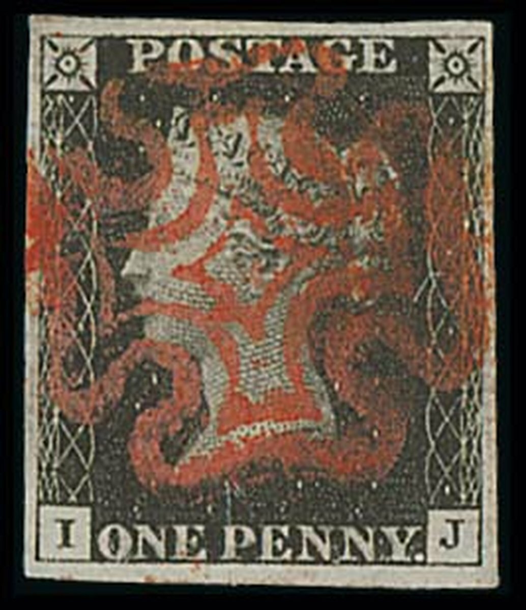 IJ, good margins all round, cancelled by practically complete, upright Maltese Cross in red; also KL, large margins all round cancelled by black Maltese Crosses, small fault across upper third. Generally fine and an attractive pair.