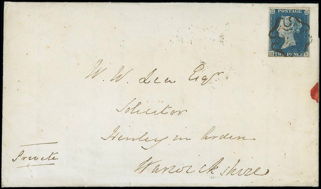 HK, small to good margins all round, tied by black Maltese Cross to entire, with contents, to Henley in Arden with Lymington c.d.s. of 16 April 1842 on the reverse; fine