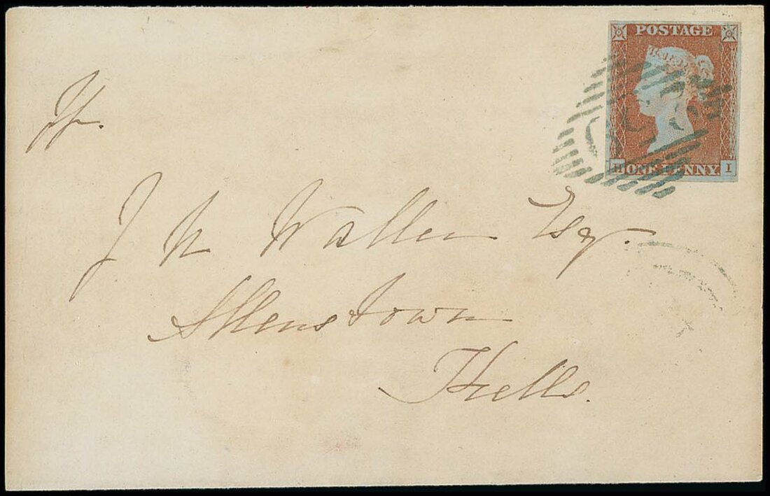 Plate 72: HI, good to large margins all round, tied to wrapper (no side flaps), dated 28 Feb. 1848, locally addressed, by a superb green Irish "259" numeral of Kells; very fine. Specialised BS28xc