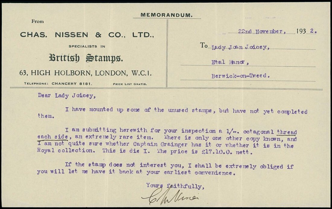 Charles Nissen, 22 November 1932, when he charged £17, 10/-