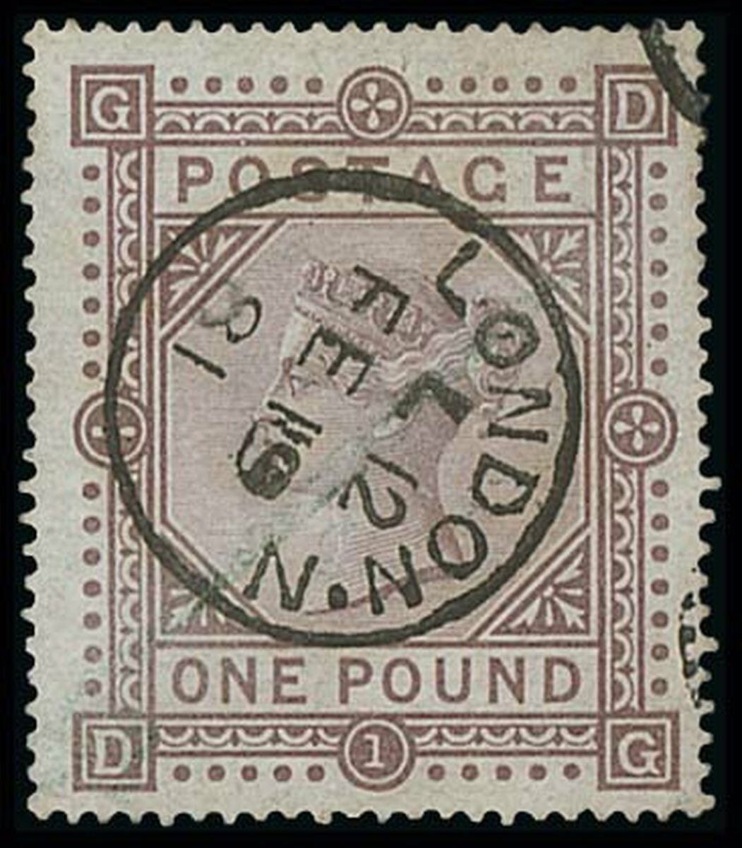 £1 brown-lilac, crisp London c.d.s. of 19 Feb. 1881, well centred, wonderful colour and good perfs., fine. S.G. 129, £4,000