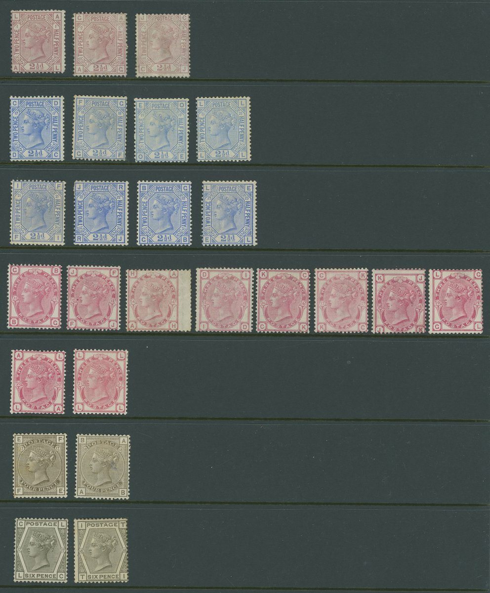 Watermark Anchor, White paper 2½d. rosy mauve Plates 1, 2 and 3, Watermark Orbs 2½d. blue, Plates 17 to 20, 3d. rose Plates 11-19, 1880-83 Watermark Crowns 2½d. blue Plates 21-23 (with additional Plate 22), 3d. rose Plates 20 and 21, 4d. grey-brown Pates 17 and 18, 6d. grey Plates 17 and 18; original gum to unused, mixed condition but fine included