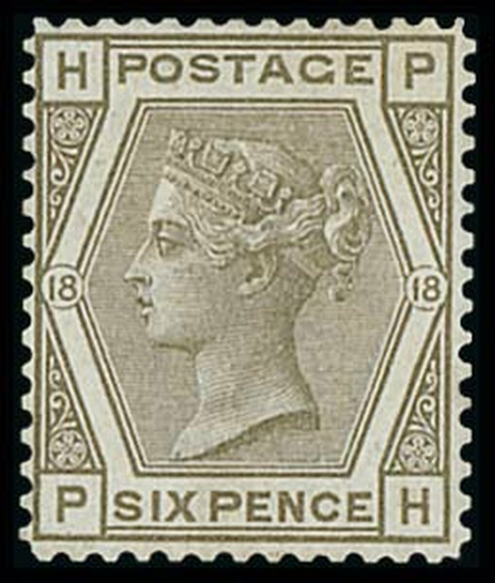 6d. grey, PH, Plate 18 imperforate imprimatur, fine original gum, from the De La Rue "Before and After" committee presentation book. Spec. J89, £2,750, S.G. 161var