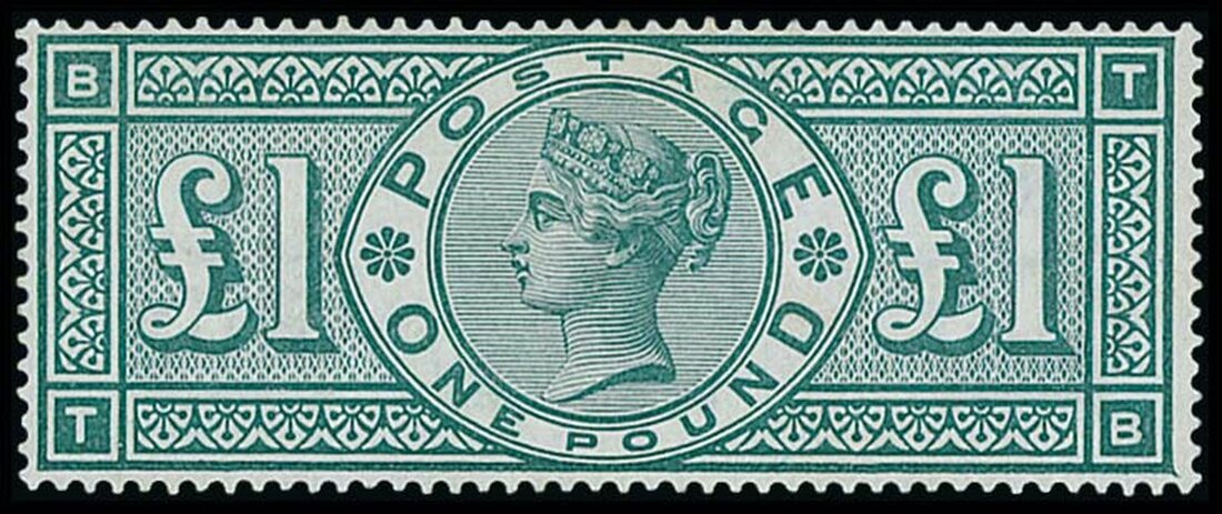 £1 green, original gum (barest trace of a hinge), good colour, well centred and fine. S.G. 212, £3,500
