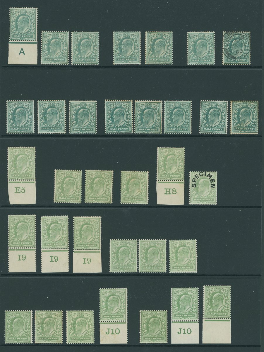 ½d. a mint range of shades including blue-green from dull to deep (15 including one used); pale yellow and yellowish green (19) some with controls "