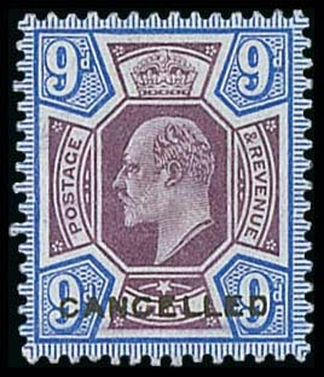 9d. dull purple and ultramarine on chalk surfaced paper overprinted "