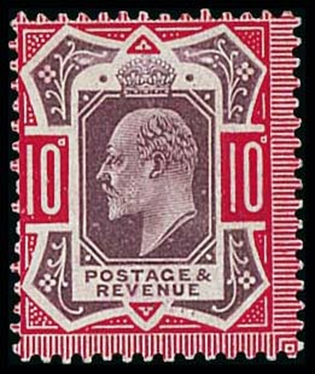 10d. slate-purple and deep (glossy) carmine on chalk surfaced paper, large part original gum, a major rarity and a difficult stamp. Hendon Certificate (2012). Spec. M43(4), £4,500