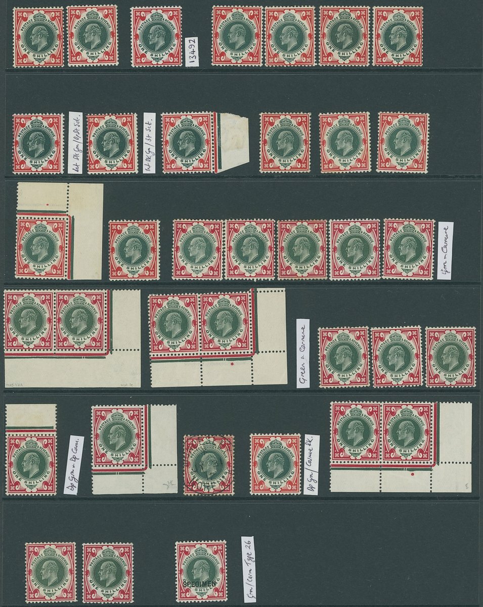 1/- mint range (43) across all shades including green and carmine overprinted "