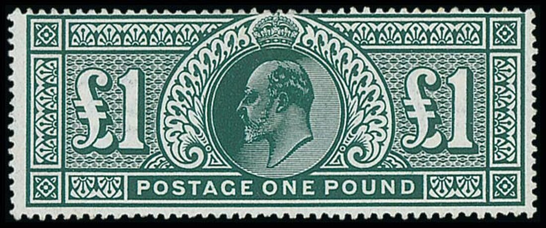£1 deep green in particularly deep shade, large part original gum, a stamp of remarkable appearance. Spec. M56, £2,000