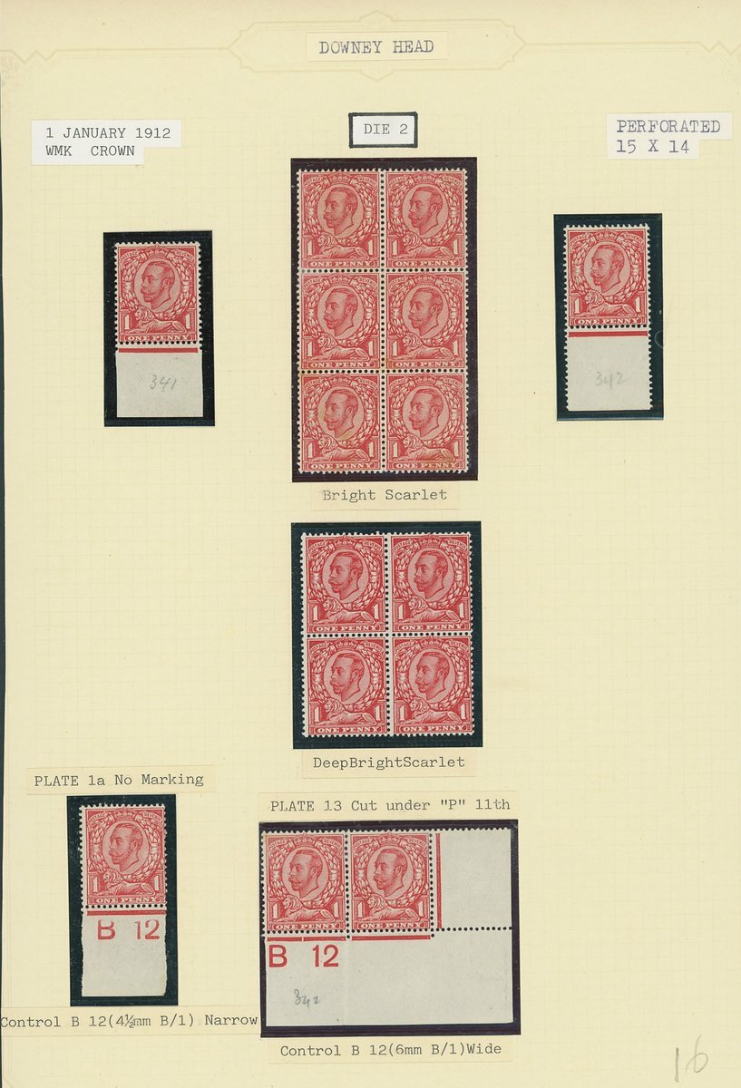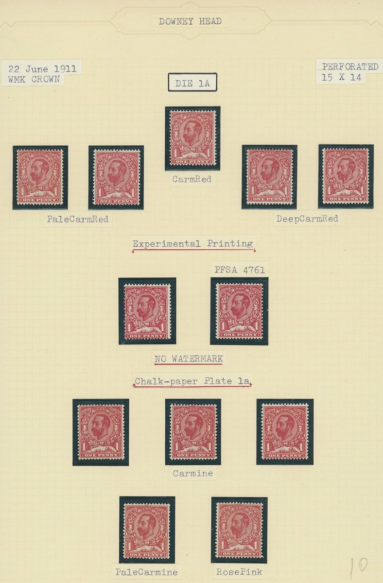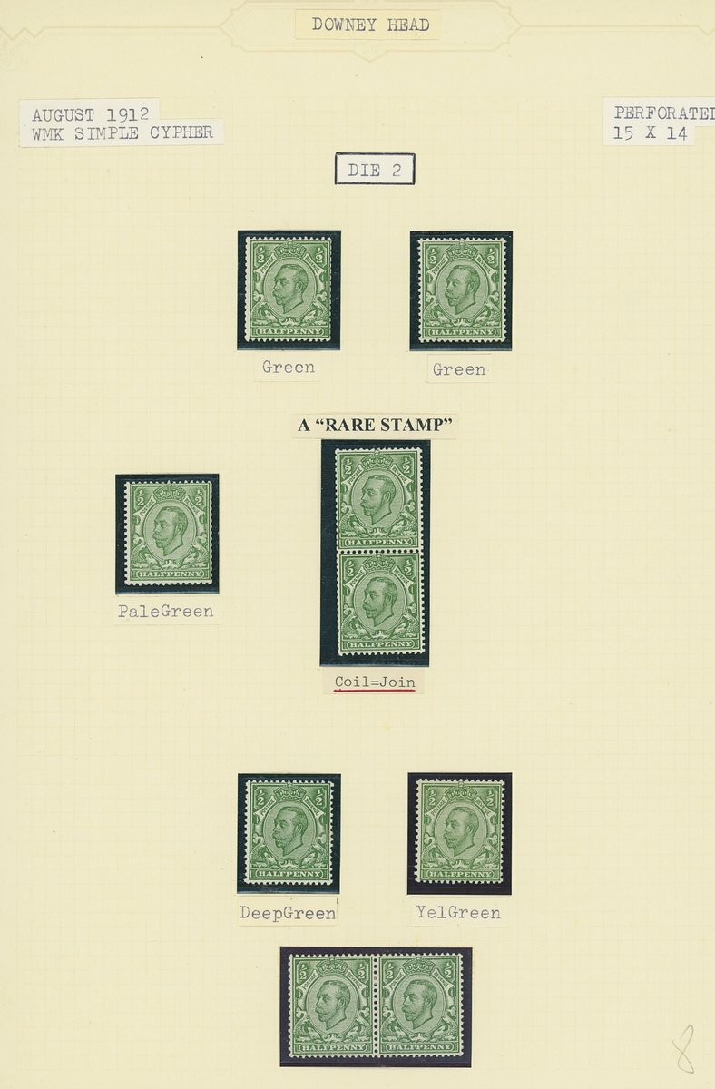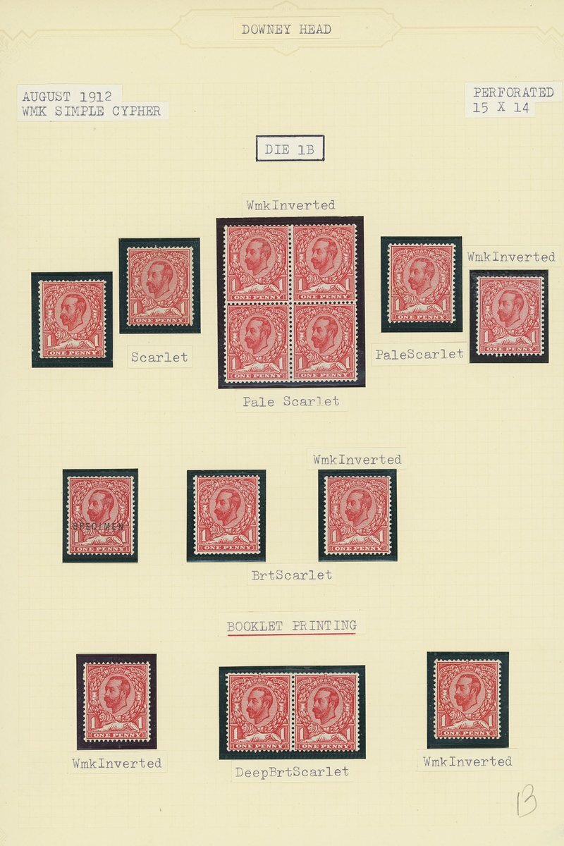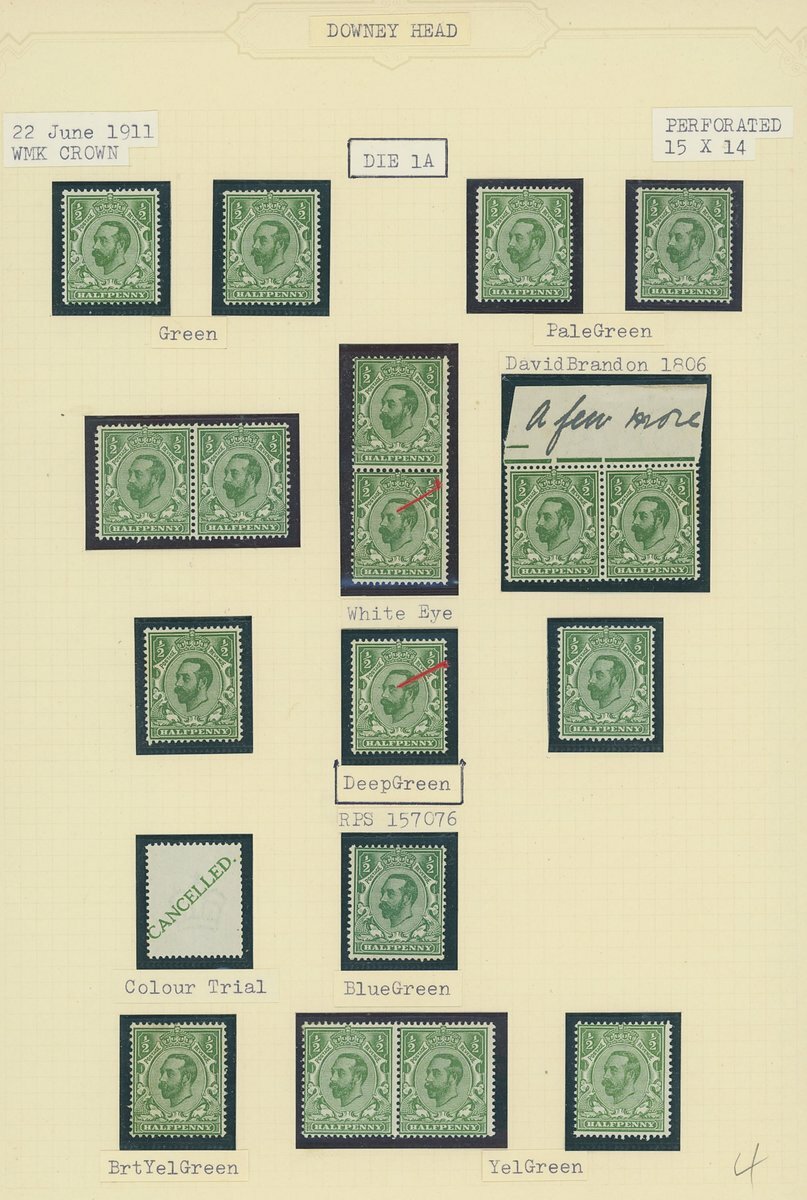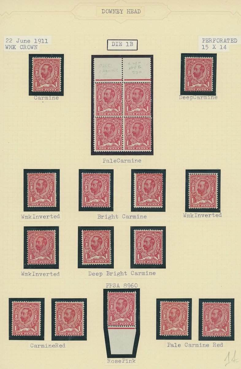 Downey Heads specialised collection on album leaves, with shades as identified by vendor, some with certificates, noting 1911 ½d. Die 1A bluish green unmounted mint with R.P.S. cert (1992), others generally with Brandon or P.F.S.A. certs, several with variety no cross in crown; also noting 1912 ½d. Die 2 marginal block of twenty-four mint variety without control and a few plate proofs. Viewing recommended.