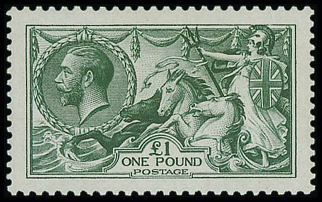 £1 deep green, large part original gum, very good centring and freshness of colour, fine and rare. S.G. 404