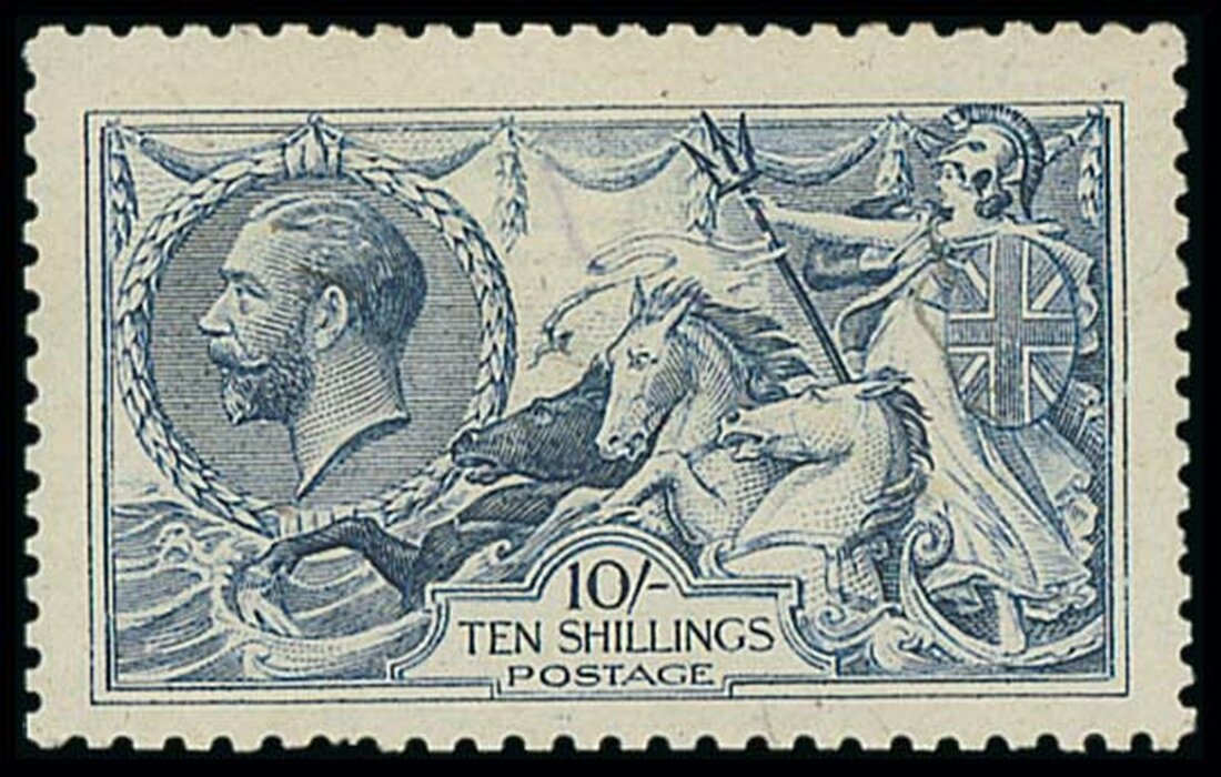 10/- deep blue, the barest traces on mounting at top otherwise fine and rare. R.P.S. Certificate (1978). S.G. 411, £3,250