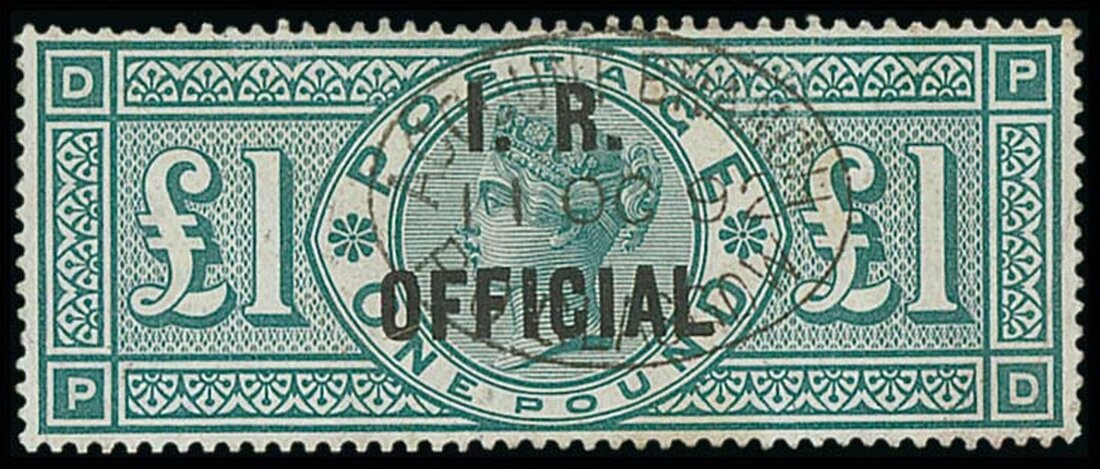 1887-92 £1 green, PD, cancelled by "Account Branch / P.O. Glasgow" 11.10.92 d.s., some creasing and small foreign object in printing by "