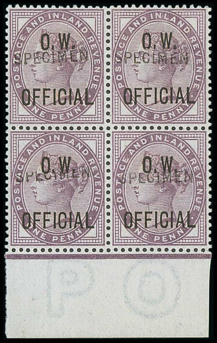 1d. lilac block of four overprinted "